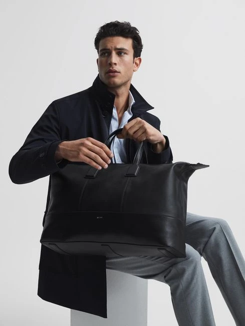 Travel in style with the Carter Holdall in black, crafted from 100% leather for a luxurious touch. It features carry handles and a removable shoulder strap for versatility. The grained finish lends a sophisticated note.