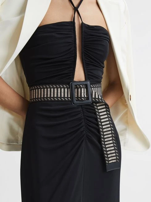 Complete your getaway edit with the black Daisy belt. It’s crafted from raffia, which lends a seasonal touch. An oversized buckle is added for a bold look. Layover flared and fitted garments for a contemporary edge.