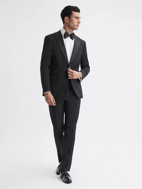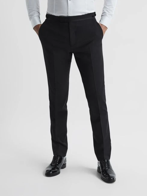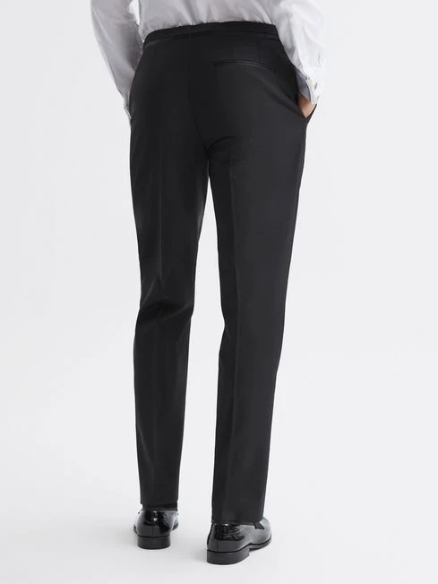 Leave a lasting impression at your next black-tie event with the Poker tuxedo trousers in Navy. Liquid repellent and crease-resistant to maintain form, they are tailored to a modern fit and feature contrasting satin trim to the waistband. Wear with the matching dinner jacket and a bow tie for sartorial perfection.