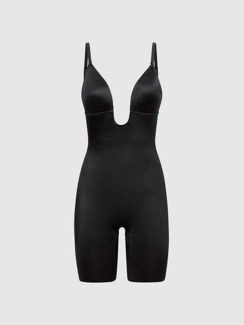 Reiss Black Spanx Shapewear Plunge Low-Back Mid-Thigh Bodysuit