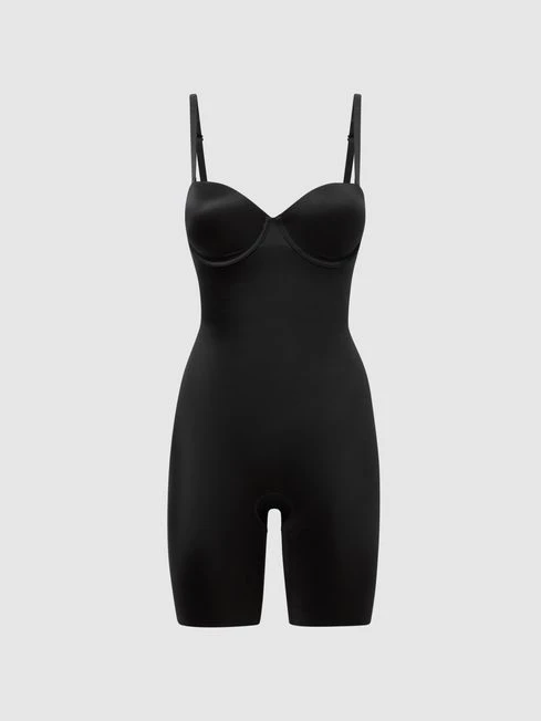 The Suit Your Fancy Strapless Cupped Mid-Thigh Bodysuit is crafted from an ultra-thin, lightweight fabrication that shapes and smooths the frame. It’s fitted with an Easy Access Gussetâ„¢ for everyday convenience and adjustable, 5-way straps allow ultimate versatility. Choose this bodysuit to build a flawless base beneath your existing Reiss edits.