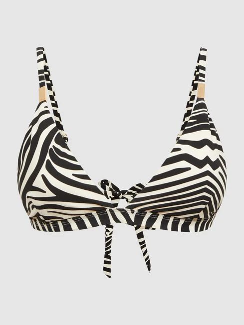 A vivid zebra print is featured on the Melody bikini top, making it a playful pick for your next warm-weather getaway. It’s fitted with a self-tie fastening and adjustable shoulder straps, allowing a customisable fit. Pair with the coordinating bikini bottoms for a confident edit, or mix and match with a plain option for a contemporary look.