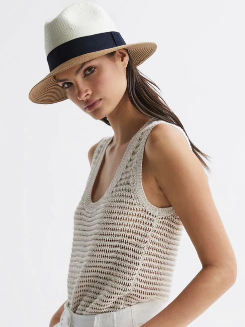 Give your resortwear edits a fresh update with the Annie straw hat. It’s a wide-brim style constructed from contrasting paper weaves for a contemporary edge. Throw on with lightweight separates for instant holiday appeal. Weaved paper construction.