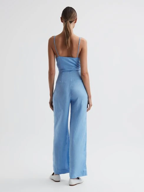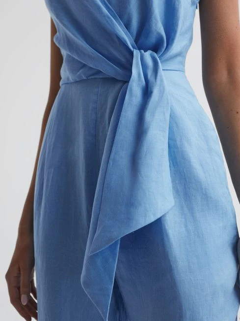 Reiss Blue Emily Linen Side Tie Jumpsuit