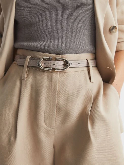 The Bailey belt in blush embraces influences from the American West in an updated mood, fitted with a gold-tone metal buckle in a double horseshoe shape. It’s made from leather for a luxury stance.