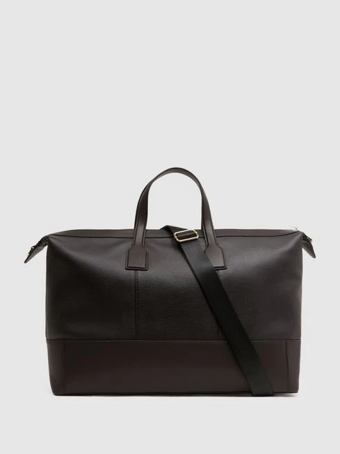 Travel in style with the Carter holdall in chocolate, crafted from 100% leather for a luxurious touch. It features carry handles and a removable shoulder strap for versatility. The grained finish lends a sophisticated note.