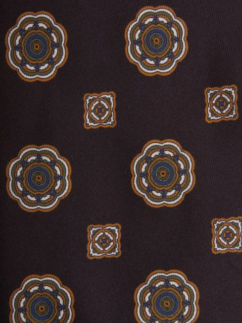 Crafted from 100% silk, the Imperio tie is the perfect final additional to your formalwear. The bold medallion print seamlessly blends traditional tailoring with modern design. Elevate your workwear looks or evening attire.