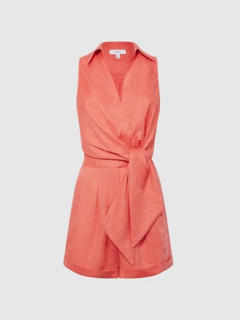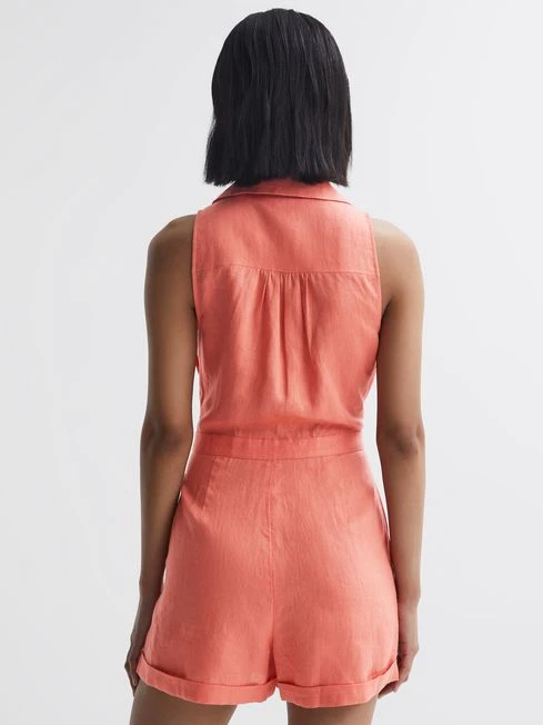The Suki playsuit is cut from lightweight, breathable linen into a simplistic shirt-inspired design. It’s finished with a self-tie detail to the waist to cinch the profile. Loaded with throw-on-and-go appeal, it can be worn with embellished sandals for the daytime and slip-on heels for warm, vacation evenings.