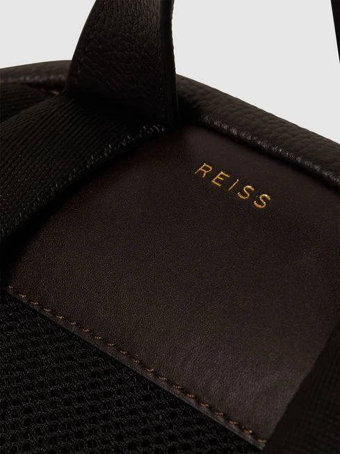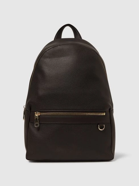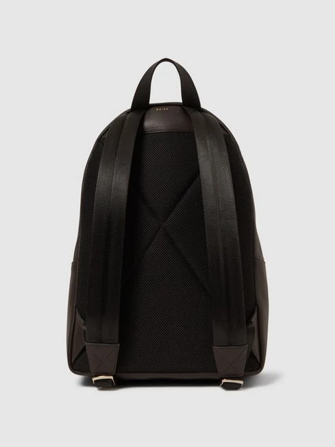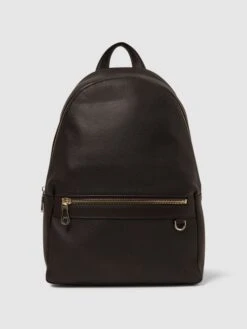Commuter styling gets a luxe update thanks to the black Drew backpack. Crafted from leather and fitted with a mesh back panel, this is a hardwearing, comfortable option for everyday use. It has one main zipped compartment and a front pocket for essential items. Internal pockets aid organisation, and adjustable shoulder straps customise the wear.
