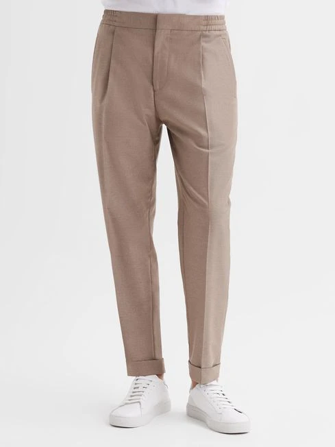 The Brighton trousers are a smart-casual style, featuring a front pleat and jogger-style waistband with an internal drawcord. The leg tapers at the ankle and they are finished with a turned-up hem. Wear with a T-shirt and trainers for an attitudinal aesthetic.