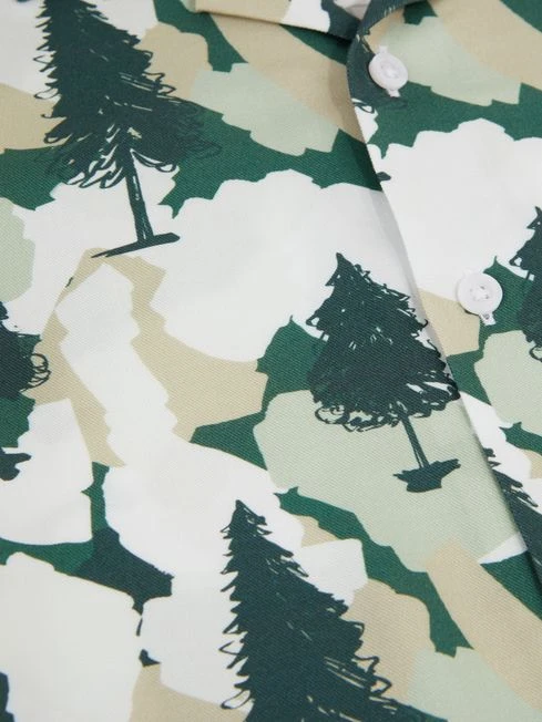 Encourage confident dressing with the Saxon short-sleeve shirt. It’s a button-through, Cuban-collar style. This inherently formal shape is offset by a playful forest print, ideal for smart-casual occasions and weekend wear. Pair with tonal chino trousers for a bold, yet refined outlook.
