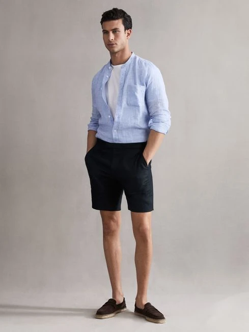 A preppy style agenda is reborn with the Searcy linen shorts. They’re engineered for summer wear, but their versatile black hue makes them a stylish option for all year round. Side adjusters tailor the fit and pockets lend a practical feel. Tuck in a linen shirt and pair with espadrilles to further this timeless aesthetic.