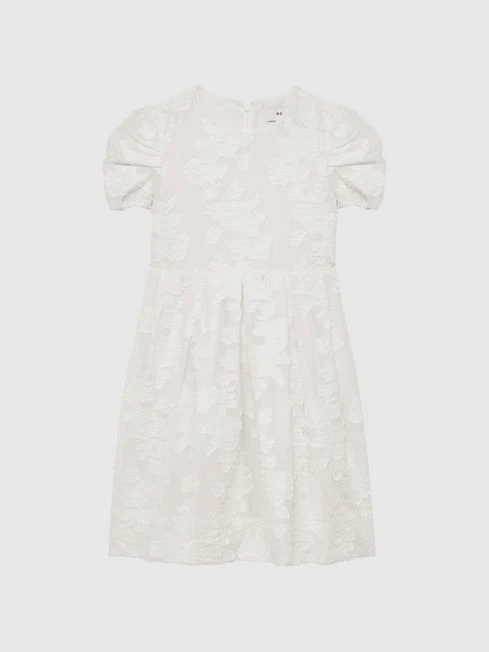 The Amalie dress is a feminine pick for special occasions. It’s crafted from a textured, floral printed fabrication and fitted with puff sleeves. The bodice sits slender against the frame and the pleated skirt flares out for a subtle impact. Add a pair of metallic pumps to curate a charming event edit.