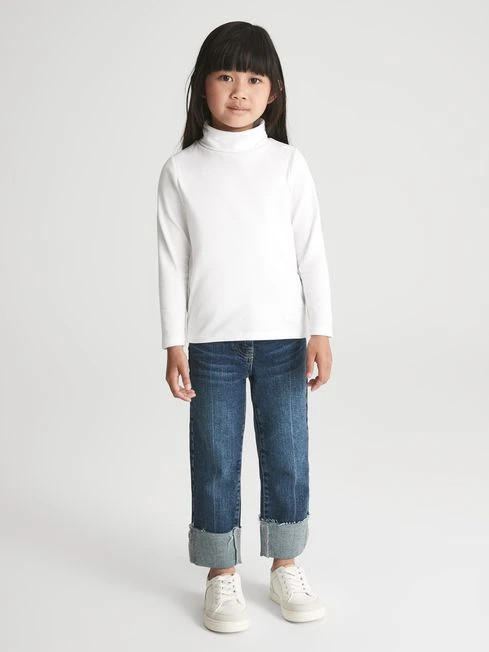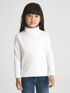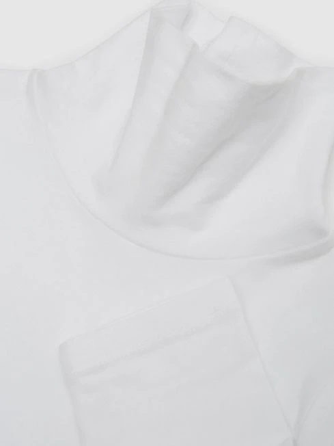 The ivory Carey top is a practical layering option, crafted from soft cotton jersey with 5% stretch. It’s fitted with long sleeves and a snug roll neck. Wear it with denim and trainers, then add an overcoat when the weather calls for it.