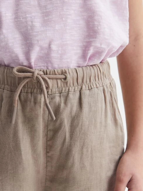 The ice blue Cleo trousers are an essential addition to her wardrobe. Their 100% linen fabrication ensures comfort and breathability, ideal for both active and relaxed weekend plans. Pockets and a drawstring waistband are added for practicality. Opt for a timeless look by pairing with a T-shirt and trainers.