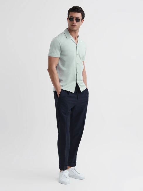 The Caspa shirt is engineered from a mercerised cotton jersey for a luxuriously soft finish. It features a cool Cuban collar and short sleeves for a sartorial summer aesthetic. A great smart-casual piece, style it with tailored trousers and loafers for a modern approach to office dressing.