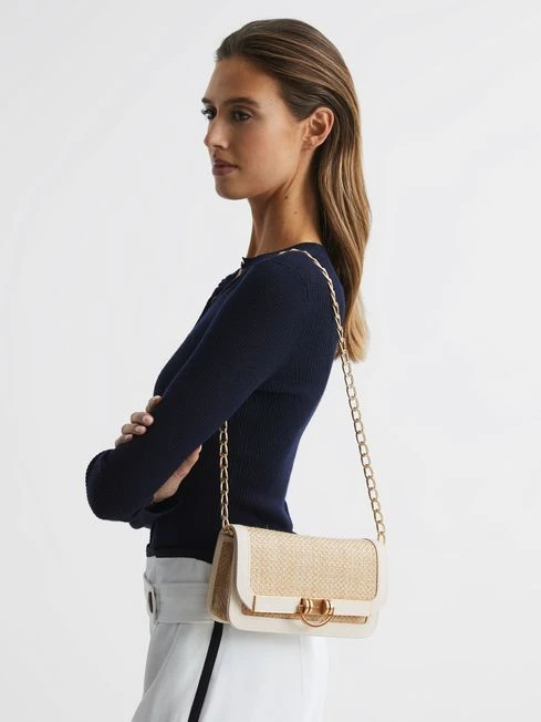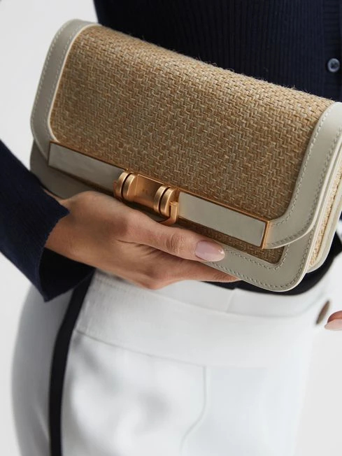Choose the natural Lexi clutch bag to add a chic finish to your look. Made from on-trend raffia with leather bordering, it features a magnetic clasp fastening which doubles up as a sleek hardware detail at the front. Find the perfect pairing in our new arrivals.