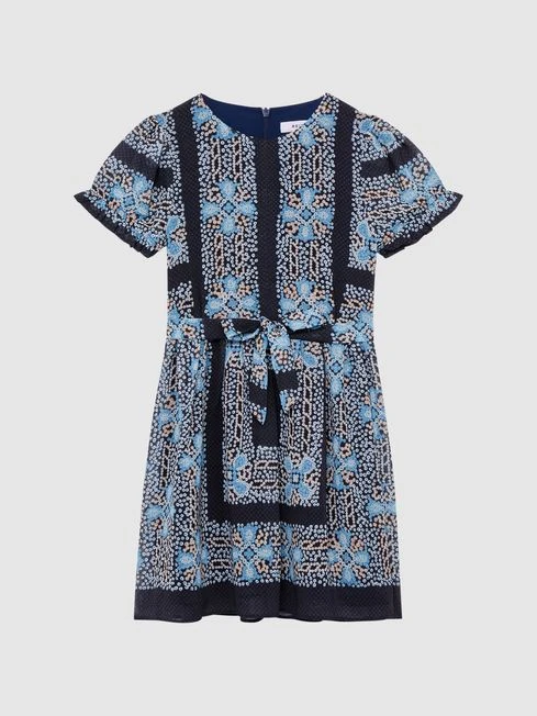 Expand her special occasion selection with the navy Alianna dress. It’s crafted from a unique floral print and fitted feminine puff sleeves. Frill detailing accentuates the look, whilst a waist belt tailors the profile. Pair with her favourite pumps to get party-ready in an instant.