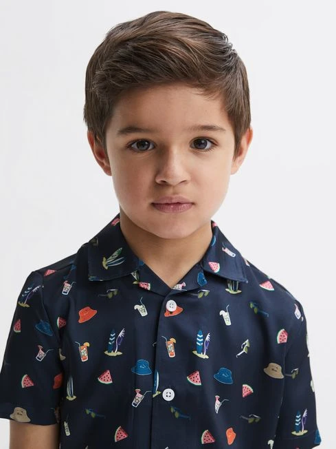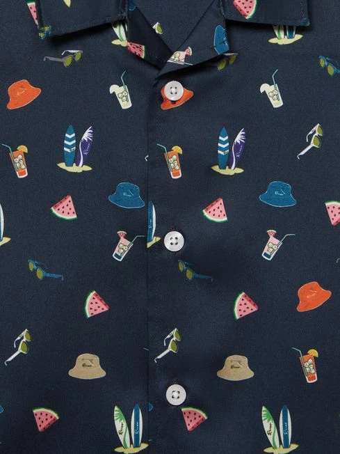 The Archer shirt is fabricated in a contemporary beach print and cut with a Cuban collar for a playful yet polished feel. Wear poolside with the coordinating shorts for easy and instant style, or choose jeans for daytime plans.
