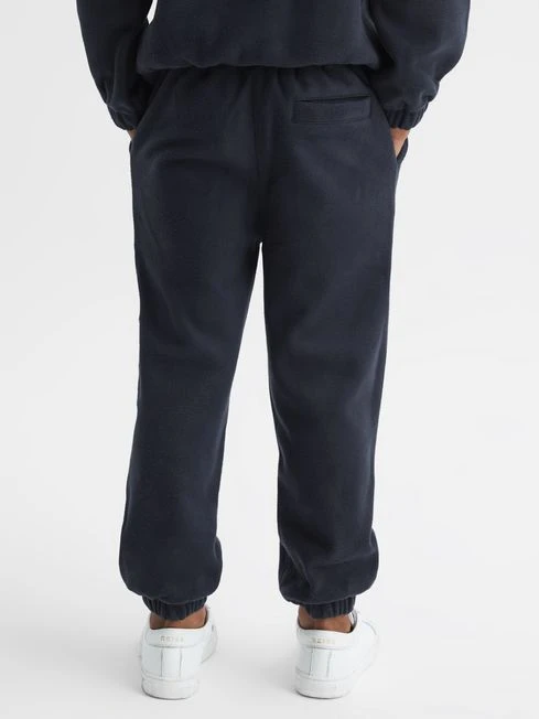 Casual days call for comfort, and the navy Bear joggers are crafted with this in mind. They feature a drawstring waist and cuffed hems for relaxed wear. Dual zipped pockets are added for everyday functionality. Embrace luxury loungewear by pairing with the matching fleece.