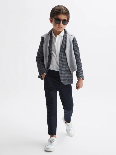 The Progress blazer is patterned in classic puppytooth for a heritage feel. Its tailored to a single-breasted front with notch lapels, welt pockets and a double vent. Wear it with a shirt or roll neck jumper for classic REISS style.