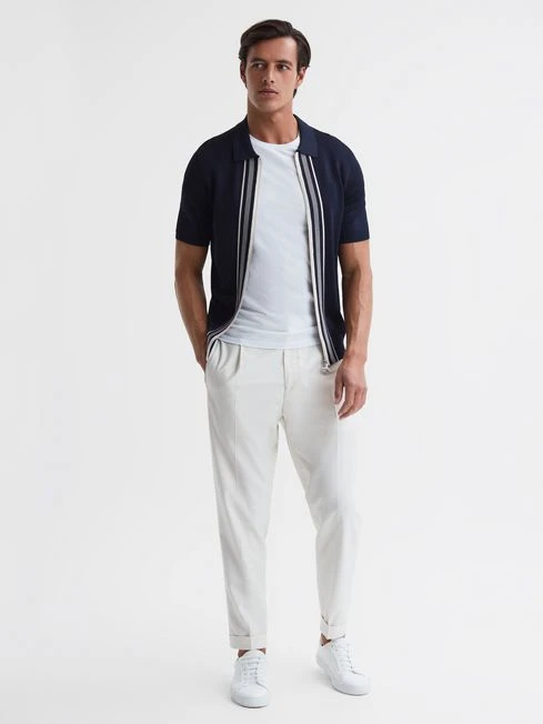 Smart-casual styling makes a resurgence with the Castleton shirt. Its zip front closure sets it apart from a traditional polo shape, and its stripe design modernises the look further. Wear alone or over a plain T-shirt, and choose chinos for a refined outlook.