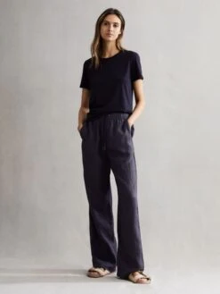 The Cleo trousers are crafted from 100% linen, engineered for ultimate comfort and breathability, and then garment-dyed for a soft touch and individual appearance. These trousers are fitted with a drawstring waist that cinches the profile, before falling to a wide-leg finish. For easy styling, tuck in a plain T-Shirt and throw on neutral flats.