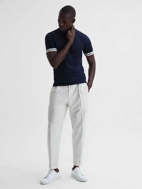 Update a wardrobe staple with the Dune crew neck T-Shirt in navy. It’s crafted from 100% cotton with a mercerised finish for a sumptuously soft hand feel, ideal for casual plans. The stripe detailing is added to the sleeves, for a sportive-inspired look. Pair this lightweight option with chinos or jeans to get the weekend ready.