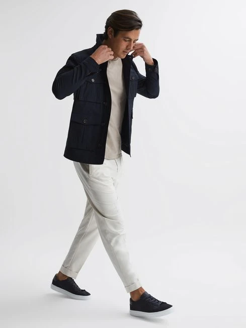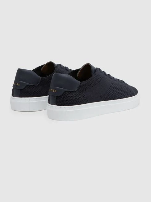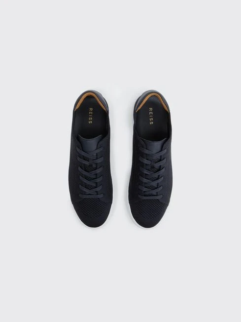 The navy Finley trainers are a unique knitted construction finished with leather detailing, offering a luxe take on a sportswear-inspired shoe. Wear with a T-shirt and tailored trousers for a trend-led, smart-casual look.