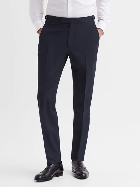 Crafted from a luxurious wool blend, the Hope modern-fit trousers are the easiest route to tailored perfection. They boast a subtle stretch, helping to maintain the shape of the garment and increase comfort for the wearer. This piece is best styled with a shirt, the matching blazer and waistcoat for a polished boardroom look.