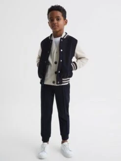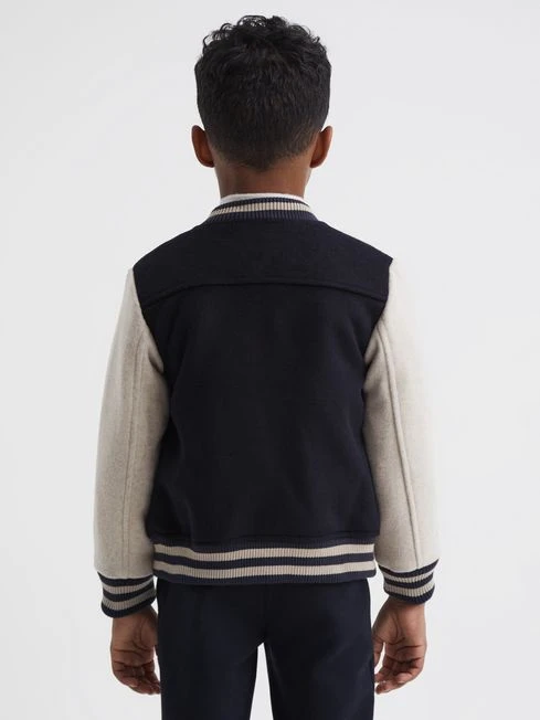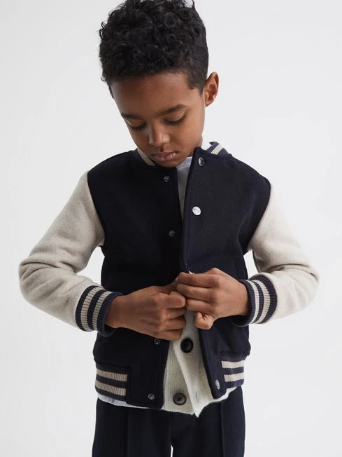 Embrace on-trend styling, courtesy of the navy Kansas bomber jacket. True to classic Varsity design, it’s crafted with elasticated, striped trims and a press-stud closure. Style over his casual looks or smart edits for ultimate style mileage.