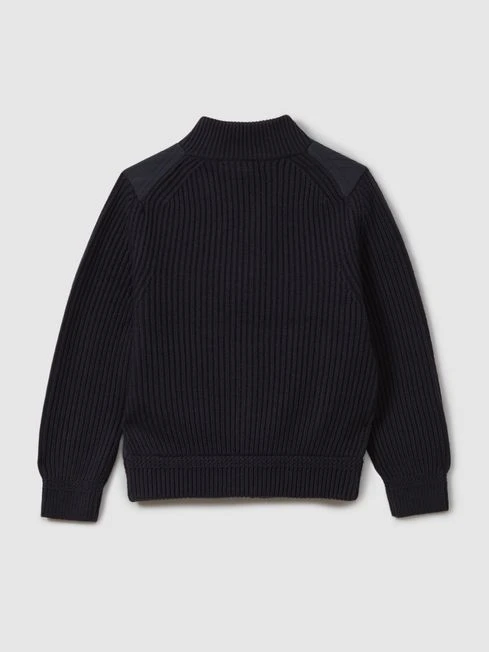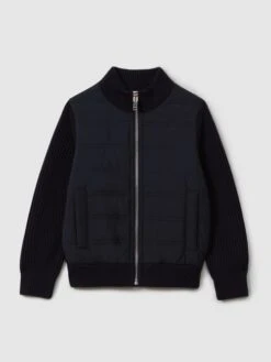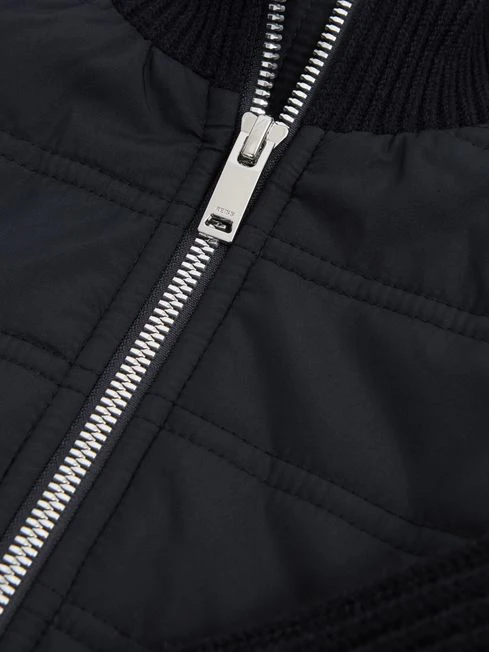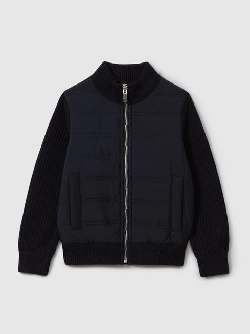 Reiss Navy Trainer Senior Hybrid Zip Through Quilted Jumper