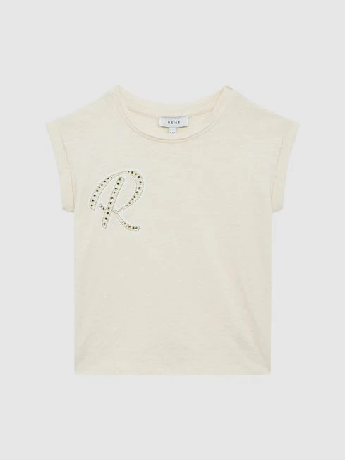 The Tabby T-shirt is a classic feminine shape, lent nuance by its rolled crew neckline and an embellished ‘R’ motif to the chest. Tuck into tonal shorts for a chic, bohemian-style ensemble.