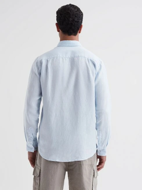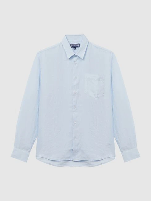 Vilebrequin, curated by Reiss, is a French swimwear brand inspired by stylish beach living, vibrant vacationers, and functional design. Ever-evolving yet always classic. The Caroubis linen shirt in pale blue is a lightweight styling saviour designed with vacations in mind. Its traditionally formal shape lends sophisticated appeal, whilst still being a versatile option. An embroidered motif is added to the hem as an understated style note. Wear unbuttoned with your favourite swim shorts. Or, get ultimate style mileage by pairing with formal separates.