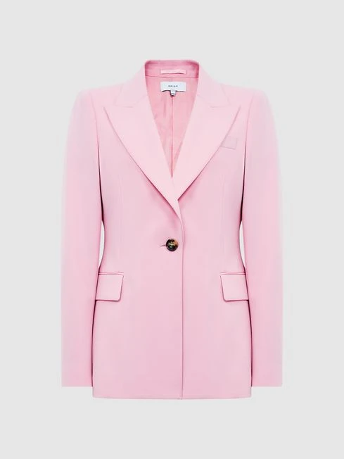 Update your workwear selection with the pink Blair blazer. It’s cut from a wool blend in a single-breasted silhouette and is accented with mottled buttons to the front and cuffs. Pair with the coordinating trousers for a confident look elevate the edit with open-toe heels.