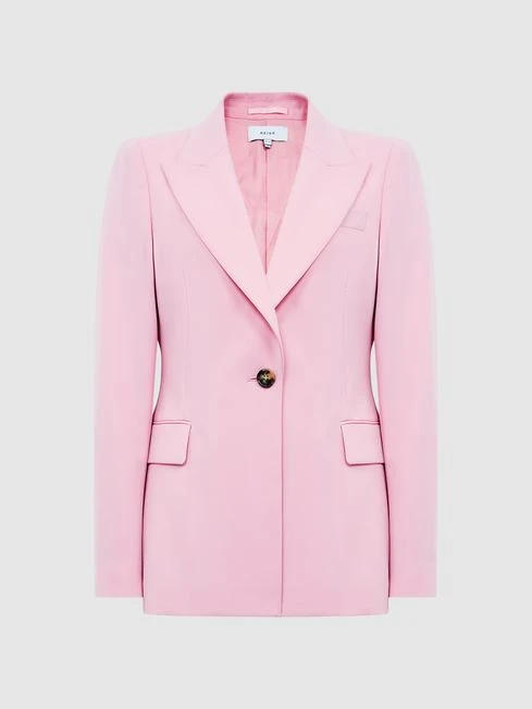 Update your workwear selection with the pink Blair blazer. It’s cut from a wool blend in a single-breasted silhouette and is accented with mottled buttons to the front and cuffs. Pair with the coordinating trousers for a confident look elevate the edit with open-toe heels.