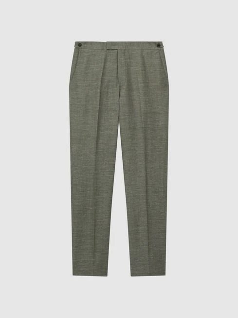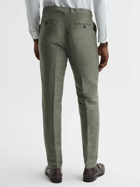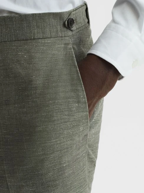 City styling gets a fresh update with the sage Riva trousers. Their wool-linen blend fabrication makes them a durable yet lightweight addition to your formalwear rotation. Style with the coordinating blazer for a sleek edit. A patterned tie and pocket square complete the look.