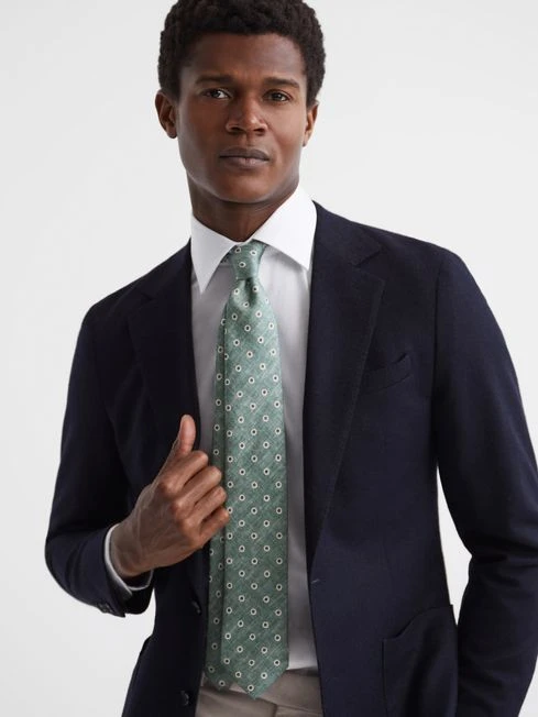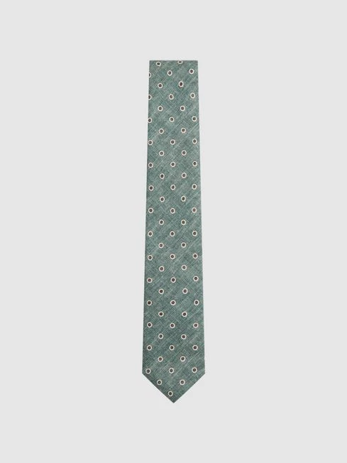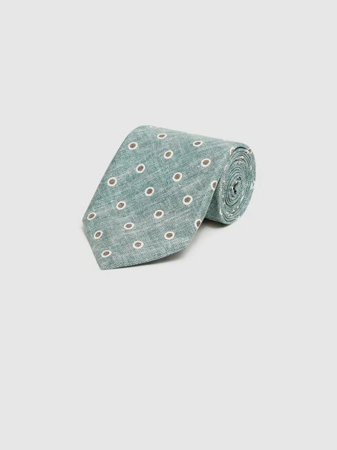 Reiss Sea Green Melange Porto Silk Polka Dot Print Tie