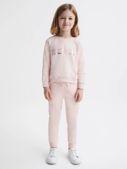 The Maria joggers are crafted from a cotton blend and are cut to sit close to the frame. The slim-fit style is embellished with sequin Reiss motifs to elevate her loungewear drawer with a touch of sparkle. They feature an elasticated drawstring waist and slip pockets for everyday functionality. Match with the Bryony crew neck jumper for a decorative take on casual styling.