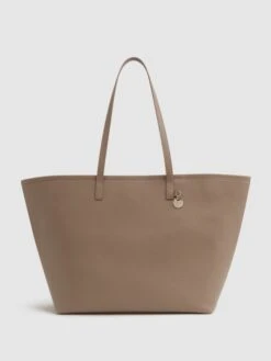 Workwear styling gets a modern update with the taupe Dena tote bag. It’s crafted with convenience in mind, with a spacious main compartment and internal pockets. The 100% leather composition and branded gold-tone hardware give it a refined finish. Choose as your 9-5 staple.