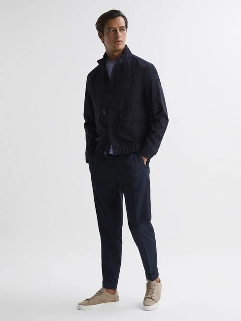 The navy Finley trainers are a unique knitted construction finished with leather detailing, offering a luxe take on a sportswear-inspired shoe. Wear with a T-shirt and tailored trousers for a trend-led, smart-casual look.