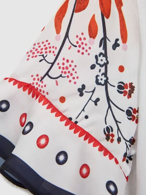 Reiss White Anastasia Junior Flared Printed Sleeve T-Shirt