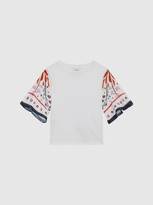 The white Anastasia T-shirt is an effortless choice for a smart-casual dress code. It’s cut with a crew neckline and flared sleeves, which are designed in an intricate floral print. Tuck into high-waisted jeans for a refined edit, or pair them with a skirt for special occasions.