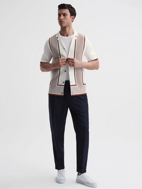 For sophisticated dressing that doesn’t compromise on style, choose the Heath short-sleeve shirt. Its bold striped design ensures an eye-catching edit, especially when styled with plain separates. A Cuban collar is featured for formal appeal. Offset this mood with relaxed-fitting trousers and trainers.