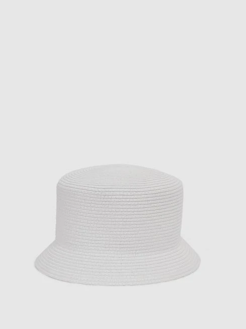 The white Lexi woven bucket hat is the ideal summer companion this season. Wear it as a stylish addition to any outfit, it has the functional benefit of aiding in sun safety.