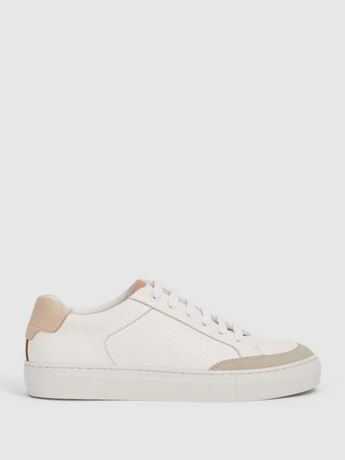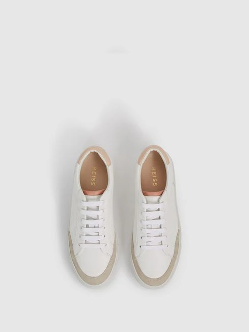 Reiss White/Mineral Pink Ashley Low Top Leather Trainers