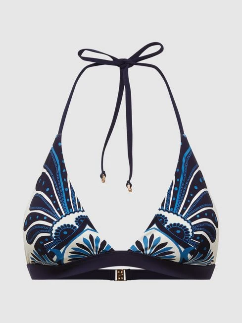 A printed design makes the Lucille bikini top a playful option for this holiday season. It’s fitted with a halter neckline which ties at the reverse for a customisable fit. Gold-tone hardware provides a luxe edge. Pair with the coordinating bikini bottoms to complete the look.